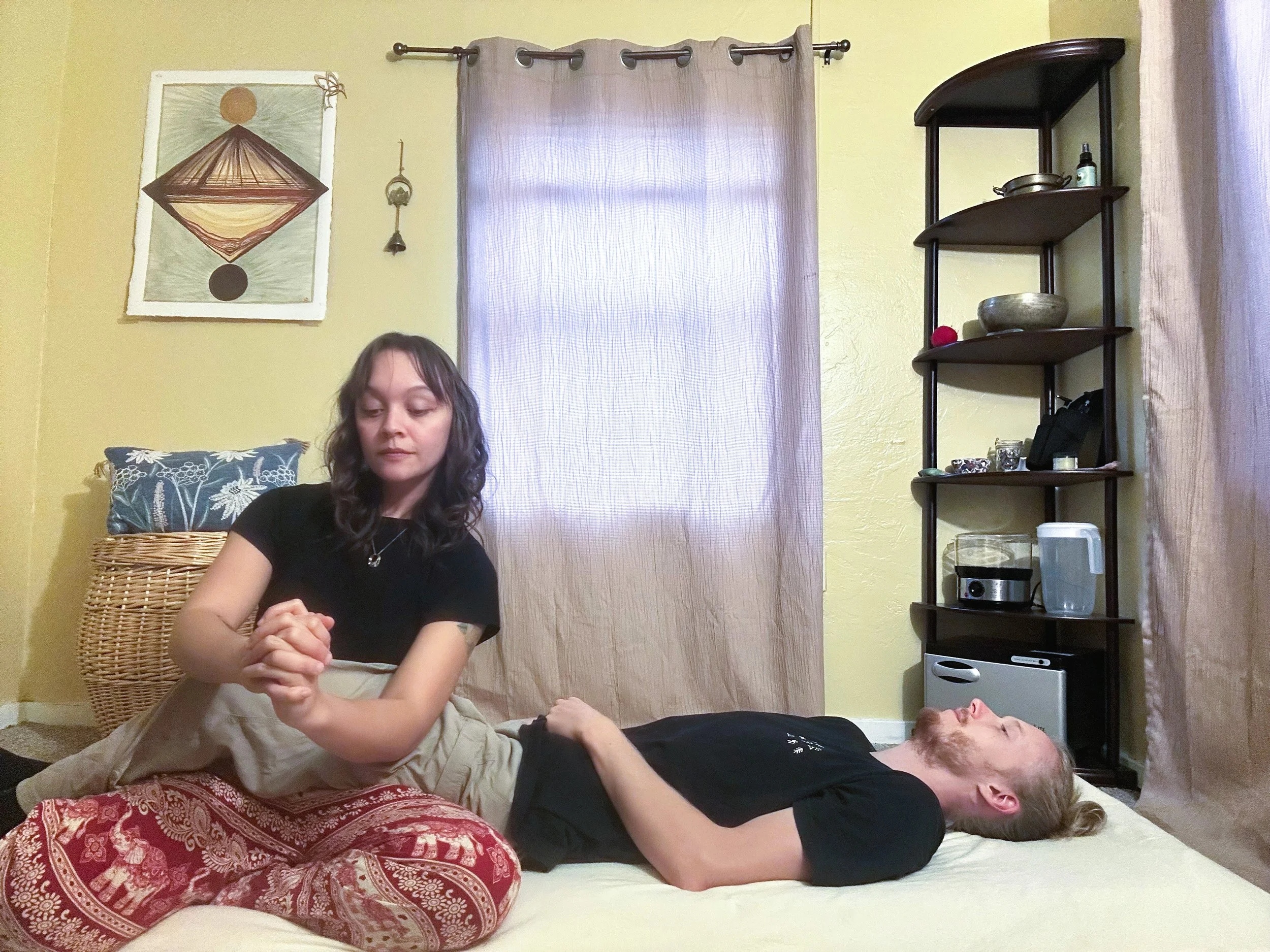 The work is intuitive and flowing, with an emphasis on presence, breath, and mindful touch. Working intentionally with the client’s breath, this session sinks deeply into the body without force- allowing tension to unwind naturally and the nervous system to soften.